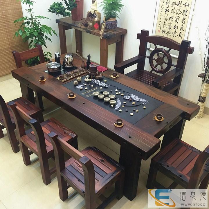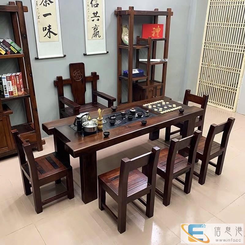 漯河市老船木茶桌椅子仿古茶台实木沙发茶几餐桌办公桌家具博古架